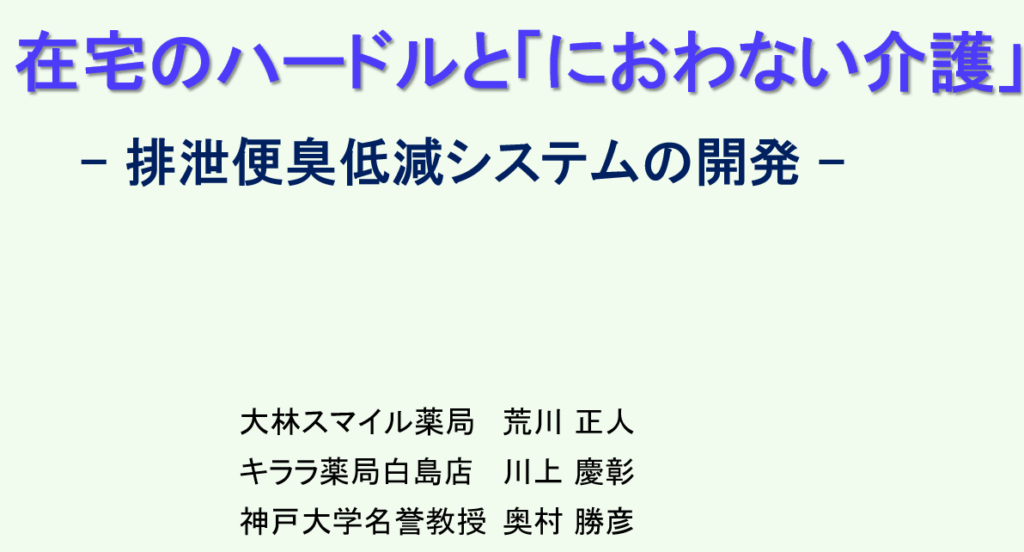 一方で、介護施設には、「入りたくても入れない、入れる施設は払えない」のが老後家計の現実である。そこで、寝たきり時の排泄便臭低減、「におわない介護」による課題克服を試みた。